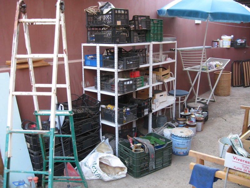 Werkzeug und Material mich hier erwartet. Einen ganzen Tag habe ich geordnet. Besser geht´s nicht mehr.